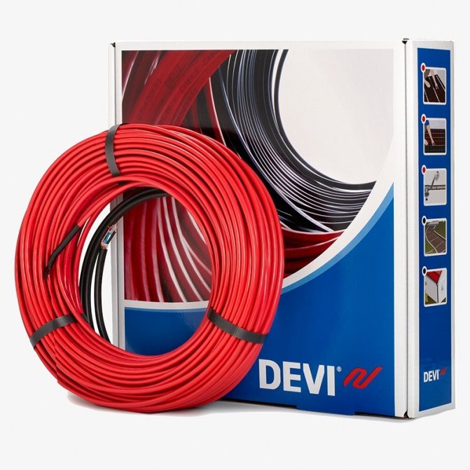 - Deviflex DTIP - iki damarlı PVC yalıtımlı kablo, hem iç mekanlarda (tam bir ısıtma sistemi kurmak için) hem de dış mekanlarda (rampalarda, merdivenlerde), 10 veya 18 W / m güçte kullanılabilir. Çeşitli uzunluklardaki koylardaki mağazalara geliyor, 10 m'lik bir segment 3100 ruble'den başlıyor;