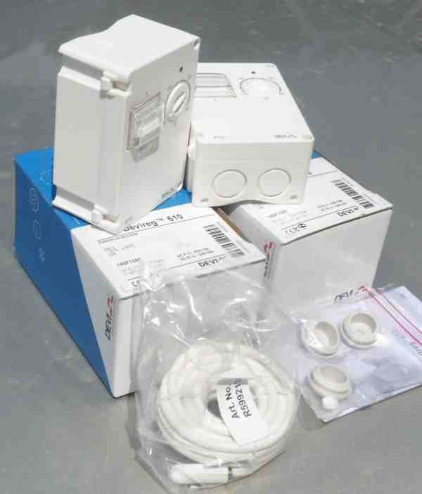 Toza ve neme dayanıklı regülatör Devireg D 610, hem elektrikli yerden ısıtma, kar eritme ve buzlanma önleme sistemleri, ısıtma boruları, tanklar, tanklar (donma koruması) gibi sistemlerdeki Devi ısıtma kablolarını kontrol etmek ve kontrol için tasarlanmıştır. soğutma sistemlerinde (havalandırma, klimalar).
