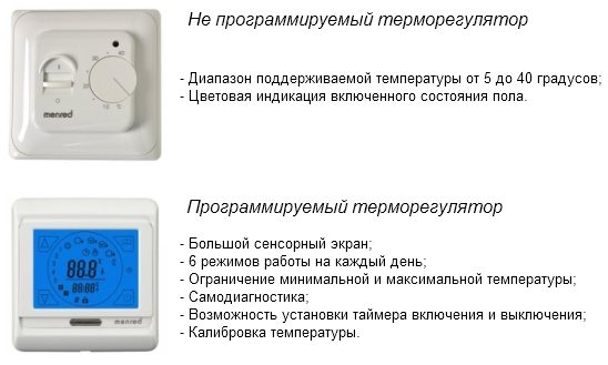 Döngü sonsuz sayıda tekrarlanır. Programlanabilir regülatörler arasındaki tek fark: Günün saatini ve haftanın gününü kontrol ediyorlar ve siz ve eviniz evde değilseniz veya uyuyorsanız ve regülatör bunu ayarladığınız ayarlar aracılığıyla biliyorsa, o zaman ısıtmalı zemin açılmayacak. Ek olarak, bazı kontrolörlerde yerleşik bir hava sıcaklık sensörü bulunur.