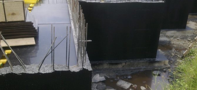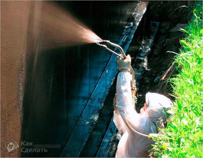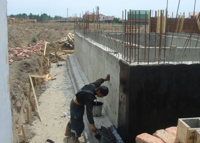 Bitümlü boya veya mastik 2 kat zorunlu olarak uygulanır. Birincisi (ve sonra kurur), sonra (birincisi tamamen kuruduktan sonra) - ikincisi. Bitüm en az 4 saat tamamen kurur.Aynı zamanda ikinci kat sıcak için bitümlü mastik kullanmak daha iyidir. Ve su yalıtım katmanları bileşimde homojen olmalıdır.