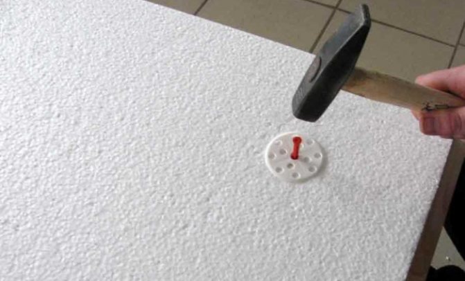 Yapıştırıcı uygun gücü kazandıktan sonra, ek olarak köpüğü dübellerle sabitleyerek gerçekleştirilir. İzolasyonu dübellerle sabitleme işlemi aşağıdaki şekilde iyi gösterilmiştir.