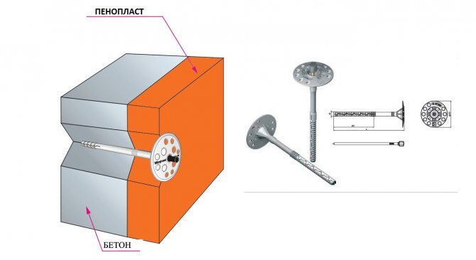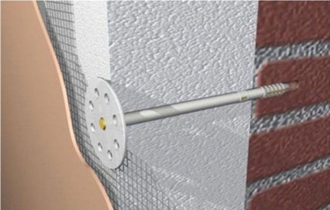 Bağlantı elemanlarının uzunluğu, ısı ürününün kalınlığına ve duvarların malzemesine göre seçilir. Kural olarak, dübelin sabitlenmesi en az 50 mm olmalıdır. Beton taban ise, minimum 40 mm değerine izin verilir. Tuğla duvarlar için, köpük tabakasının kalınlığından 70 mm daha fazla dübel sabitlemeleri önerilir.