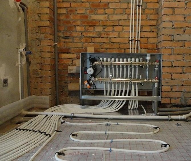 Bu karıştırıcı sıcak zeminin bir dalını çalıştırırken. Daha sonra tadilatın sonunda diğer odalara taşımayı amaçladı. Bu kolu yeni bir yerde miksere bağlamak için yere boruları döşedim.