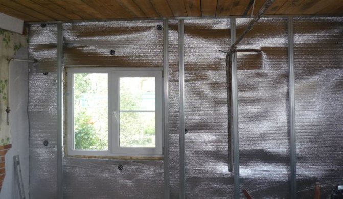 Termal radyasyon, evdeki ısıyı hapseden parlak, parlak yüzeyden yansıtılır. Isı radyasyonunu yansıtmak için ince rulolar halinde üretilen ve saklanan metal folyo kullanılır. Yapıları katmanlı. Polyester veya baloncuklu sargı ara parçaları, iki kat güçlendirilmiş alüminyum folyo arasına yerleştirilir. Böyle bir film, bir buhar bariyeri gibi zımbalarla ahşap bir tabana veya çift taraflı çelik yapılara yapıştırılarak tutturulur.