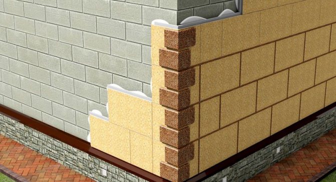 Bir tuğla (taş) yüzeye ısı yalıtımının montajı aşağıdaki şekilde gerçekleştirilir: önce, temelin çıkıntılı kenarı veya beton bir levhanın kenarı olabilecek bir destek yüzeyini donatmalısınız. Böyle bir destek yoksa, metal veya ahşap bir yanlış destek inşa etmek gerekir - bir destek rayı ve yüzeyi sıva yapmadan önce ahşap olanı çıkarılmalıdır.