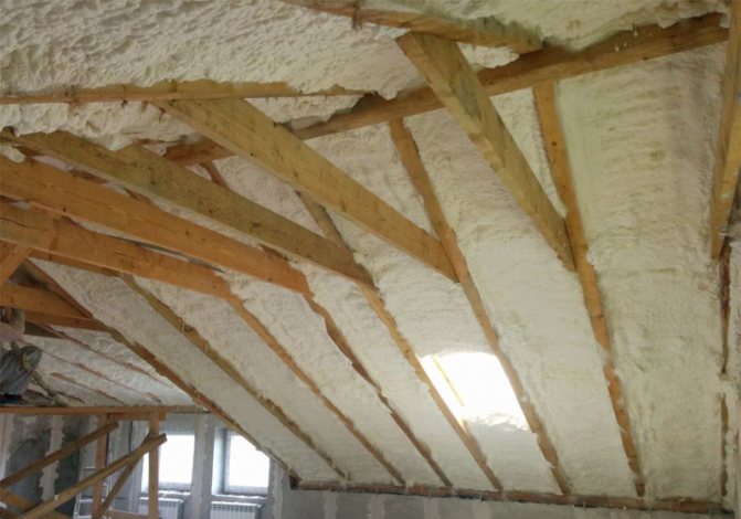 Çatının evin içinden fiziksel olarak yalıtılması pek uygun değildir, çünkü işin çoğunun elleriniz yukarıda olması gerekir. Ancak bu işlemin avantajları vardır - hava şartlarından bağımsız olarak yalıtım yapılır, ısı yalıtım malzemesinin ıslanma riski yoktur.