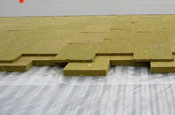 - İkinci, üst yalıtım katmanı, birinci katman üzerine bir dama tahtası deseninde yerleştirilir, böylece alın dikişleri birbirinin üzerine düşmez. İkinci katmanın kalınlığı 30 mm'dir (ayrıca bölgesel parametrelere bağlıdır) ve basınç dayanımı 60 kPa'dır.