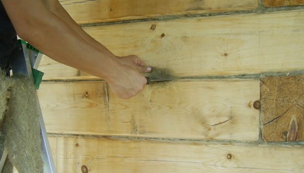 Temel olarak çatlakların (derzlerin) doldurulması kalafatlama ile yapılır. Bunu uygulamak zor değil, çünkü bu durumda işlenen bir kütük ev değil, sadece bir panel ev. Bunun için jüt, çeki kullanabilirsiniz. Ancak seçilen malzemeden bağımsız olarak, PVA ile kaplanması arzu edilir. Bu, yapının ısıl deformasyonu durumunda "gömme" nin iniş alanında kaymayacağının garantisi olacaktır. Alternatif olarak, boşlukları (büyük çatlakları) poliüretan köpükle tedavi edin.