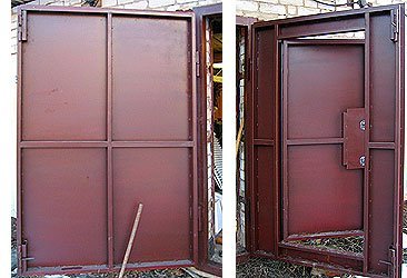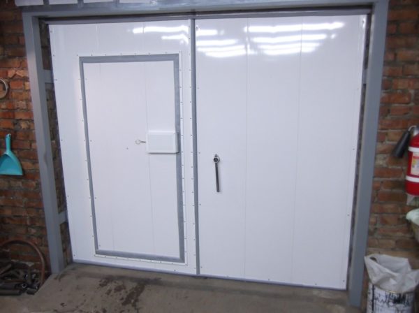 - Salıncak kapıları... Bu en ucuz seçenektir. Tasarım, dışa açılan iki kanattan oluşur.