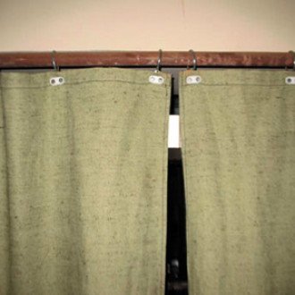 Kapının üzerinde kanvas perdeler.