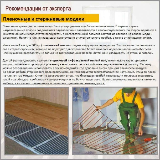 - Son kat olarak, performans özellikleri sürekli ısıtma sağlamayan bir malzeme kullanılmıştır. Örneğin, parke, ısıtılmış bir yüzeyle sürekli temas halinde aşırı kurutulur. Bu sadece kaplamanın dayanıklılığını azaltmakla kalmaz, aynı zamanda odadaki bağıl nemi de azaltır. Bu, çocukların, alerji hastalarının ve astımlıların sağlığını olumsuz etkiler, çünkü vücutları optimum düzeyde nem gerektirir;