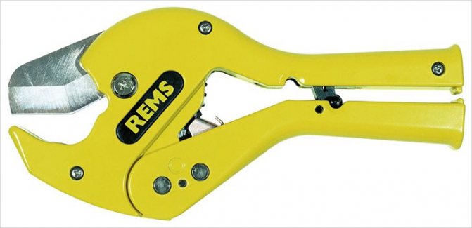 Önemli! Bu durumda, alet bu tür işler için özel olarak tasarlandığından ve özel bıçaklara sahip olduğundan herhangi bir özel çaba sarf etmeniz gerekmeyecektir. Bu bıçaklar, plastik boruları her yerde kolayca kesebilir.