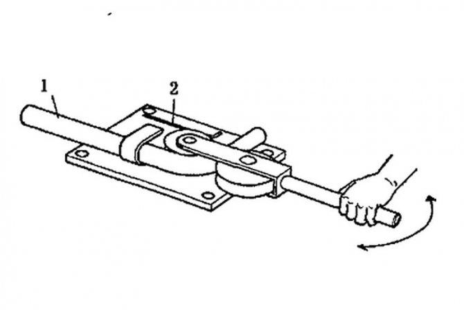 Bu durumda, boruyu bükme talimatları basittir - boru bükme koluna yeterli kuvvet uygulanır. Boru pabucuna iyice bastırılır ve deforme olur.