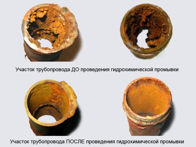 Öncelikle ısıtma sistemlerinin boru temizliğinde kullanılan kimyasallardan bahsedelim. Kimyasal reaktiflerin kullanılması, çelik ve bakır borularda oluşan kireç birikintilerinden kurtulmanızı sağlar. Sonuç olarak, boru hattı ve radyatörlerin duvarlarında bir süre ölçek ve pas oluşumundan koruyan görünmez bir film ortaya çıkar. Kimyasallar sayesinde ekipmanın hizmet ömrü uzar ve ısıtma sisteminin verimi artar.