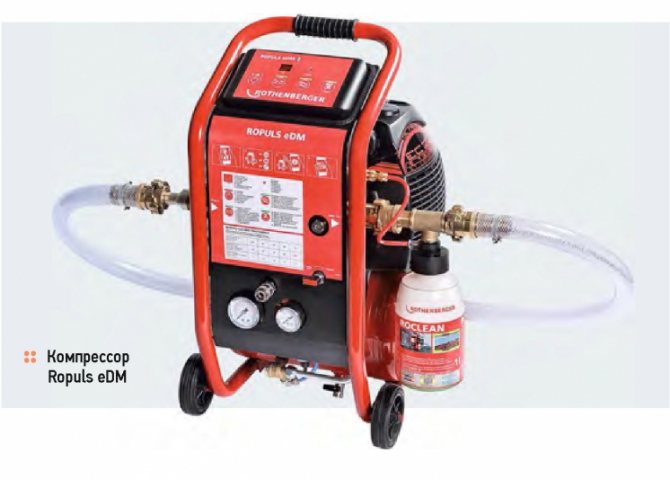 Tavsiye! Bu markanın kompresörleri, 300 litreye kadar soğutma sıvısı hacmine sahip özel bir evde ısıtma sistemlerini temizlemek için idealdir.
