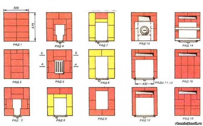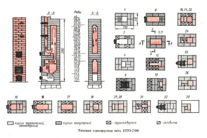 Tuğla, soba döşemek için öncelikli malzemedir. Küçük veya büyük bir "kırıntı" fırını, basit yapım çizimlerine sahip olmasına rağmen, her durumda iş sırasının ayrıntılı bir diyagramı kullanışlı olacaktır. Adım adım talimat: