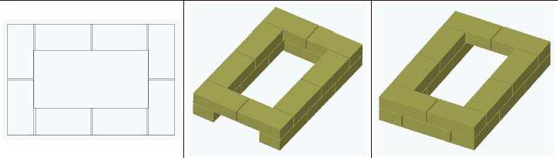 Beşinci sıranın tuğlası, önceki sıranın konturu boyunca düz bir şekilde döşenmiştir.
