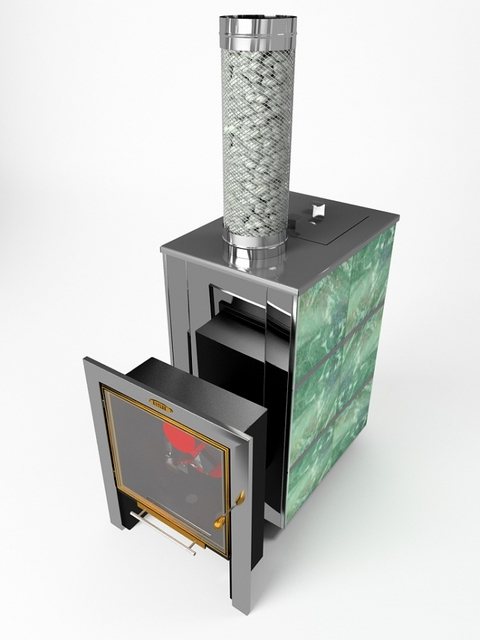 | Diğerlerine kıyasla oldukça pahalı, bir sauna sobası modelidir. Karakteristik bir özellik, doğal taşlı dekoratif bir dış kaplamadır - jadeit, serpantin veya sabun taşı seçenekleri. Yanma odası ve gövdenin malzemesi paslanmaz çelik AISI 430'dur. Çalışma modları - Rus, Fin veya Türk hamamı. Önerilen GSU - "OHG-2 Olympia" (Güney Kore). 115 mm çapında bacanın merkezi konumu. Gövde içinde gizli ısıtıcı, ayrıca baca boyunca bulunur. Baca için bir ekonomizör ile donatılmış mümkündür. Fırın boyutları: 620 (L) × 450 (W) × 900 (H) mm, ağırlık - 60 kg. Taş yer iminin kütlesi 80 ÷ 90 kg'dır. | Temel konfigürasyonda, gaz ekipmanı olmadan - 43.000 ruble'den. |