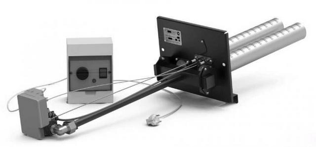 Ünlü İtalyan otomatik sistemine dayalı ev tipi gaz brülörü "Sakhalin". Bir otomasyon ünitesi (tamamen uçucu olmayabilir), yerleşik bir dişli kutusu, otomatik bir piezo ateşleme sistemi ile donatılmıştır.