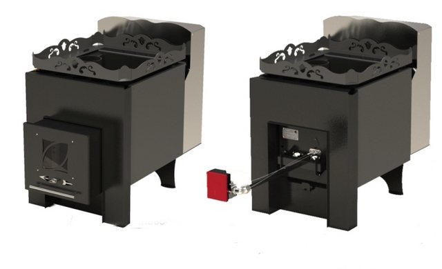 | Banyo için evrensel gaz odun sobası. Gaz versiyonunda, 8 ila 16 m³ hacimli buhar odalarında kullanılmasına izin veren bir UG SABK-TB-16 brülörü ile donatılmıştır. Malzeme - yapısal veya paslanmaz çelik ("Uralochka-16N" modifikasyonunda) 4 mm kalınlığında ve yanma odasında - 6 mm. Bacanın merkezi konumu. Soyunma odasına yerleştirmenizi sağlayan uzak yakıt giriş penceresi. Alıcı birkaç ek seçenek arasından seçim yapabilir (uygun bir ödeme için): suyu ısıtmak için menteşeli bir tank veya yerleşik bir ısı eşanjörü, soba yığınları boyunca ısıtıcı için ek bir ızgara, bir konvektör ekran, bir buhar jeneratörü. Fırın boyutları: 550 (L) × 445 (W) × 730 (H) mm, temel taş dolgunun ağırlığı 60 kg'dır. | 13900 rubleden. GSU ile tamamlandı |