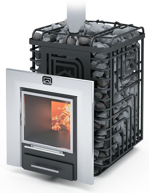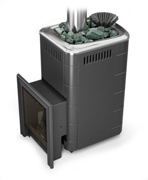 Buhar odasında böyle bir sobanın "çıplak" biçimde bırakılmadığı açıktır - tuğlalarla örtülmeli veya bir tür perdeyle örtülmelidir. Üstte bir soba sepeti mevcuttur. Soba, yüksek performansıyla öne çıkıyor, ancak maalesef fiyat tüketicilerimiz için çok korkutucu, hatta bahsetmek bile korkutucu.