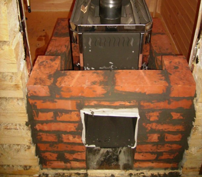 Sauna sobasını bir tuğla perdeyle kapatmak veya hatta tamamen benzer bir "kasaya" yerleştirmek, bağımsız uygulama için oldukça uygun bir iştir. Portalımızın özel bir makalesi okuyucuya bu konuda daha fazla bilgi verecektir - "Kendi ellerinizle bir demir sobayı nasıl örersiniz?".