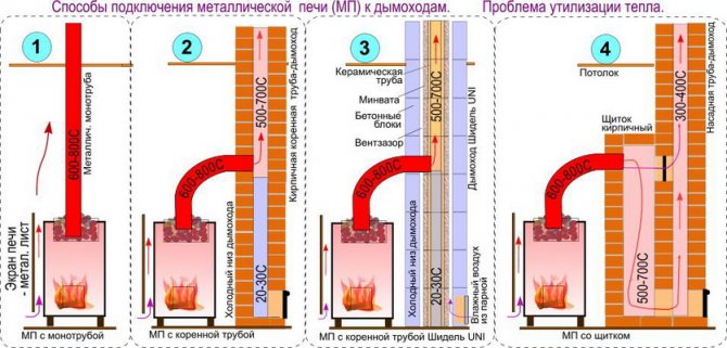 Bacanın en iyi versiyonu, değişim odasının tavanından çıkan dikeydir. Bununla birlikte, fırının tasarımı tam olarak bunu ima ediyorsa, yatay da yapabilirsiniz. Her iki durumda da bacanın altına bir delik açmak gerekecektir. İnce paslanmaz çelik şeritler ile kenar düzeltme yapılarak kesilen kenarların dış etkenlerden korunması tavsiye edilir.