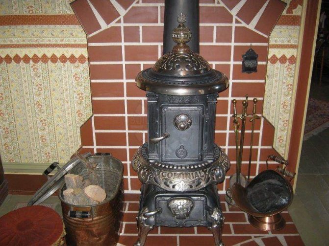 [Fotoğraf 4 Göbekli bir sobanın modern modeli, iç mekandaki dekoratif rolle iyi başa çıkıyor.]