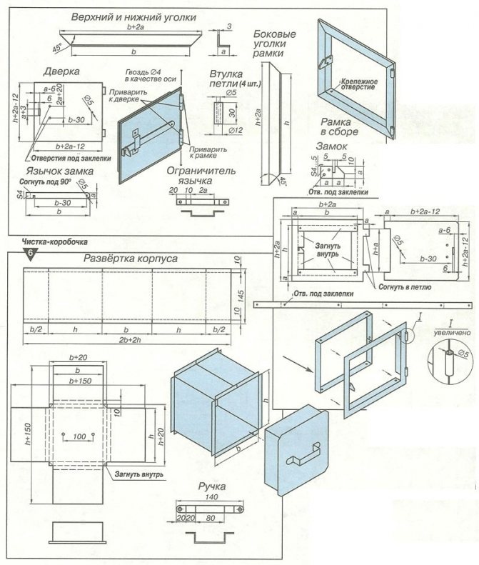 - Sonraki birkaç sıra tuğla, duvarlar ve aralarındaki boşluk oluşacak şekilde döşenmiştir. Bu alan kül ve kül toplamak içindir. Izgara üstüne serilecek. Ve ön tarafta, fırındaki çekişi düzenlemek ve fırını yakıt yanma ürünlerinden temizlemenin rahatlığı için tasarlanmış bir metal kapı (üfleyici) olacaktır. Kapı, kanopiler (menteşeler) ve bir tutamakla kaynaklanarak yeterli kalınlıkta çelik sacdan yapılmıştır. Bağlantı elemanları, metal bağlantı elemanlarının - tuğlalı bacaklar ve onlarla kapıyı tutan metal telin sıkıştırılmasıyla yapılır. Sızdırmazlık için, kapıların iç tarafına bir asbest kordonu sabitlenir.