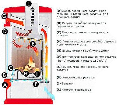 - yakıtın yeterli ateşlenmesi, kül bölmesini kapatarak veya açarak fırın cihazının güç seviyesinin düzenlenmesini mümkün kılar;