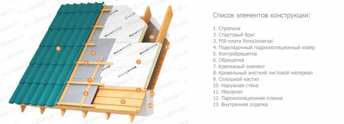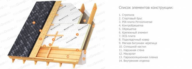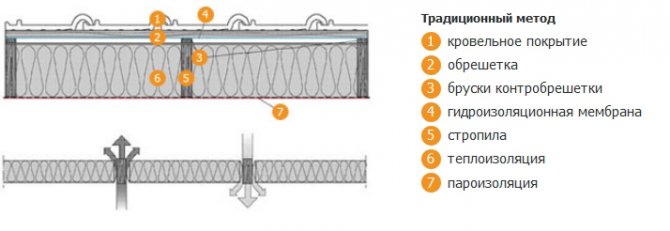 Tavan arasını örnek olarak kullanarak, yalıtımlı bir çatı kaplama pastasının yapısını düşünün: