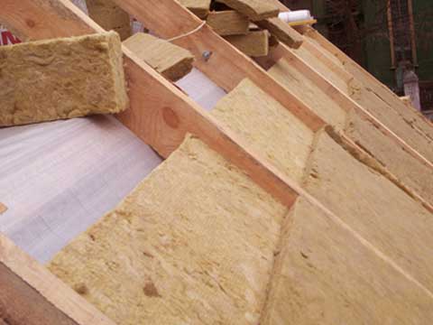 Bazalt yünü, çoğunlukla eğimli çatıları kirişli yapının hücrelerine monte ederek yalıtmak için kullanılır.Bu montaj yöntemi ile tüm vatka malzemelerinin avantajı, hücreleri çatlak ve soğuk köprüler olmadan tam olarak doldurabilmesidir.