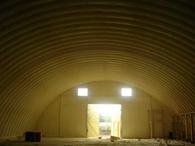 - Ниско структурно натоварване... Тежка изолация не може да се използва в хангари, тъй като значително увеличава теглото на конструкцията, което води до срутване.