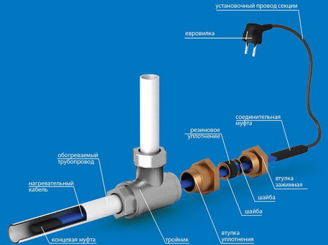 Препоръчително е да свържете нагревателния кабел към електрическата мрежа, преди да го инсталирате в тръбата. Свързването след сглобяването ще бъде по-трудно.