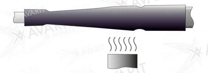 - Тръбите се вземат малко по-малки и се поставят върху всяка жица. Краищата им се загряват и почистват до 6 мм, комбинират се и след това се затягат в желязна тръба.