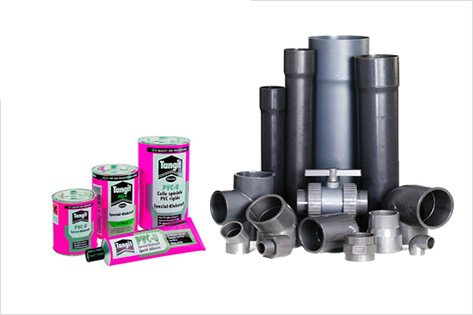 - Чрез залепване. Адхезивният състав се нанася равномерно върху повърхностите, които ще се съединяват.След това тръбата се вкарва във фитинга до пълната дълбочина на гнездото и се усуква леко, за да се разпредели лепилото по-равномерно. Докато лепилото изсъхне напълно, частите трябва да са неподвижни. Адхезивната маса осигурява добра адхезия на повърхностите и херметичност на фугата.
