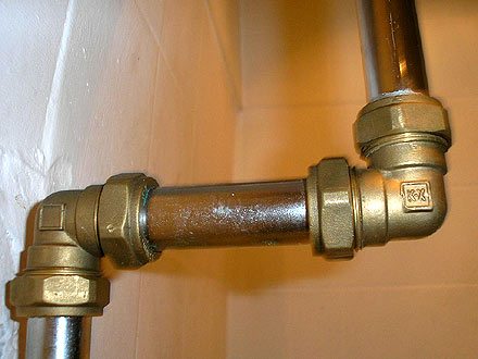 - Разглобяеми фитинги за компресиране на цанги - по време на монтажа те се вкарват в отвора с дръжка, изтеглят се заедно с цанга и се фиксират с гайка. Дръжката на свързващия елемент е снабдена с уплътняващи гумени пръстени, които са пресовани от изцедената тръба и осигуряват необходимото ниво на плътност.