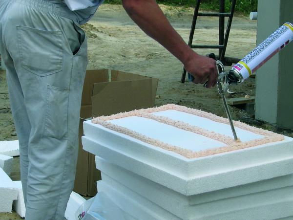 Полиуретановото съединение се нанася лесно върху листове от пенополистирол. Изсъхва бързо, като по този начин се избягва използването на специални подпори. Разходът на средства е най-икономичен. Той не се страхува от неблагоприятните влияния на околната среда. Масата не се разпространява по повърхността.