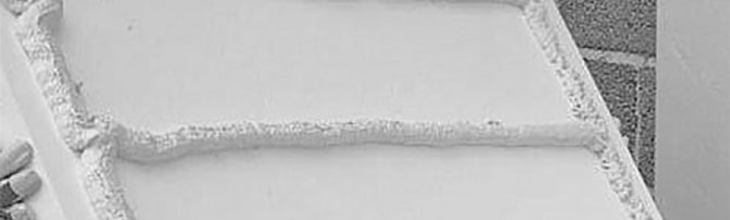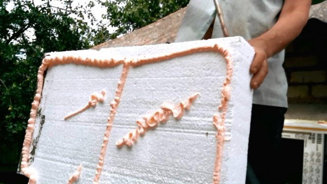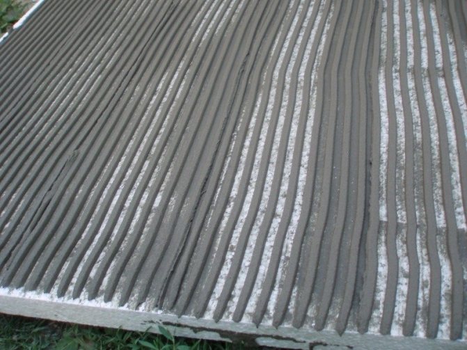- Нанасяне на сместа върху пяната. Адхезивна пяна се нанася върху дъските по целия периметър с отстъп от ръба около 20 мм, както и в центъра.