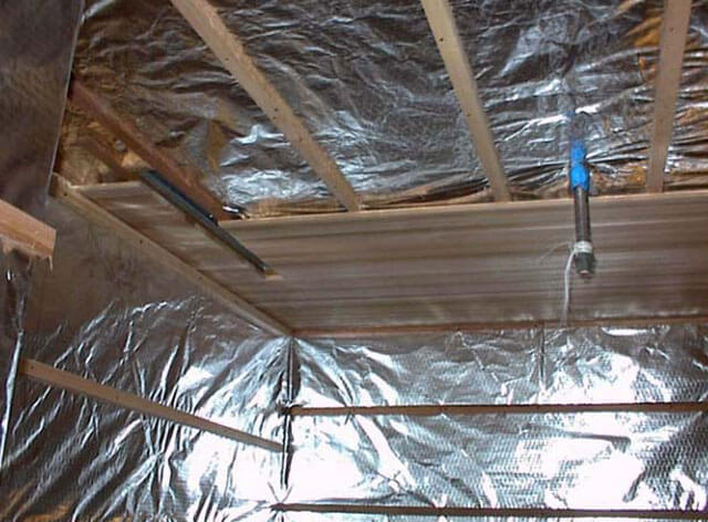 - Важно е да не забравяте на коя страна да поставите бариерата срещу пара. Фолиоотразяващата основа на филма е насочена към интериора на помещението, а разпенената основа е насочена към изолацията.