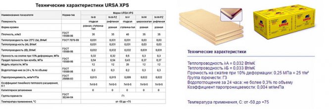 Материалите имат ниска топлопроводимост (0,028-0,035 W / mK), имат повишена якост и ниско специфично тегло (45 kg / m³), което намалява теглото на конструкцията. Екструдираната полистиролова пяна се характеризира със затворени клетки в структурата, чийто диаметър не надвишава 0,2 mm. Тази структура осигурява устойчивост на влага при влажни условия.