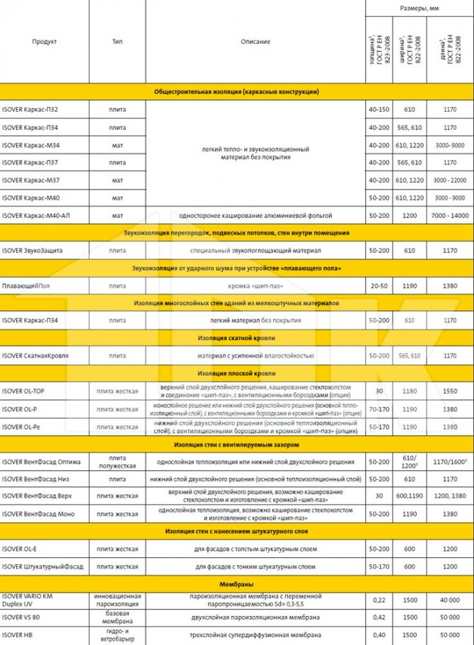 Продуктовите линии за топлоизолация Isover имат няколко десетки елемента и са предназначени за решаване на специфични проблеми. Всички те се различават по формата на доставка, дебелина, плътност и размер.