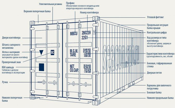Устройството на морския контейнер