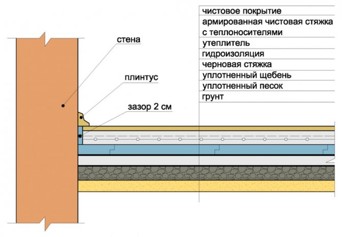 Независимо дали ще се използва ивична вдлъбната основа с мазе или грубата подова замазка ще лежи на земята, е необходимо да се организира субстрат или засипка, т.е. слой, който ще служи като бариера за влагата, издигаща се от земята, а също така изпълнява функцията на топлоизолация.