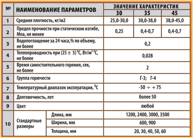 - Плътност - от 25 до 50 килограма на кубичен метър.