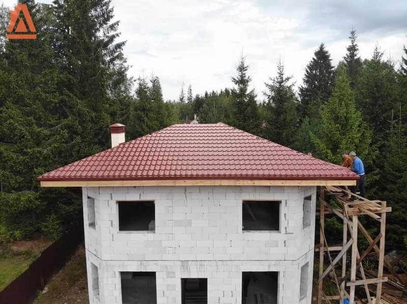 - За закрепване в ъгловата зона на сградата върху профила трябва да се изреже триъгълен фрагмент, съответстващ на степента на правия ъгъл. Изрязва се, за да може профилът с непокътната капка да се огъне зад ъгъла на къщата.