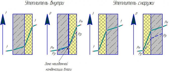 - Монтирането на топлоизолационни плочи върху външната повърхност на стените забавя скоростта на отстраняване на влагата от зидарията. Движението му се извършва под въздействието на различни физични фактори: термокапилярен поток, дифузия на водна пара, капилярна термоосмоза.