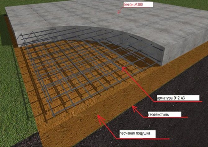 Платформа от раирана бетонна основа по периметъра ще предпази вътрешността от влиянието на околната среда и ще увеличи устойчивостта на замръзване на конструкцията като цяло. Дълбочината на основата се определя от нивото на замръзване на почвата - в повечето случаи е достатъчно 50-60 см. Основата може да бъде създадена със собствените си ръце в следните стъпки: