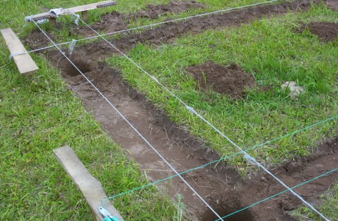 - Изкоп в зоната за кацане, създавайки изкоп с дълбочина около 80-90 cm.
