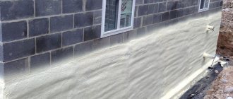- Вътре, покрай мазето или долната част на стените, поставяме листове от пяна, полистирол или друга изолация. За да избегнем прекомерна кондензация (вътре определено нямаме нужда от студена вода), обвиваме пяната в полиетилен, геотекстил или нетъкан материал, запечатваме пукнатините с полиуретанова пяна.